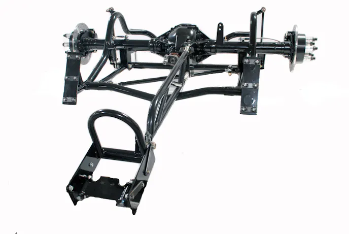 Obviously, it’s not a straight bolt-in replacement since you’ll need to clearance the center tunnel to accommodate a forward-mounted transmission, plus perform some other non-trival work to adapt the car from IRS, but the kit handles the critical aspects of suspension geometry and mounting locations for you. And as you can see from the video, it hooks – hard.