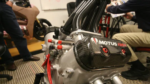The KMV4 is being designed and built by Katech Engine Development out of Detroit, and the 90 degree V4 engine looks just like a slice out of an LS7 V8 engine. It’s awesome, and weighs in at just 130 pounds, comparable to many other motorcycle engines. Plus, it makes 120 ft-lb at 4,850 RPM and max torque of 140 horsepower at 7,800 RPM. The engine has been developed for the Motus-01, a sport tourer bike that grants comfort without sacrificing speed. Plus, it looks pretty badass too.