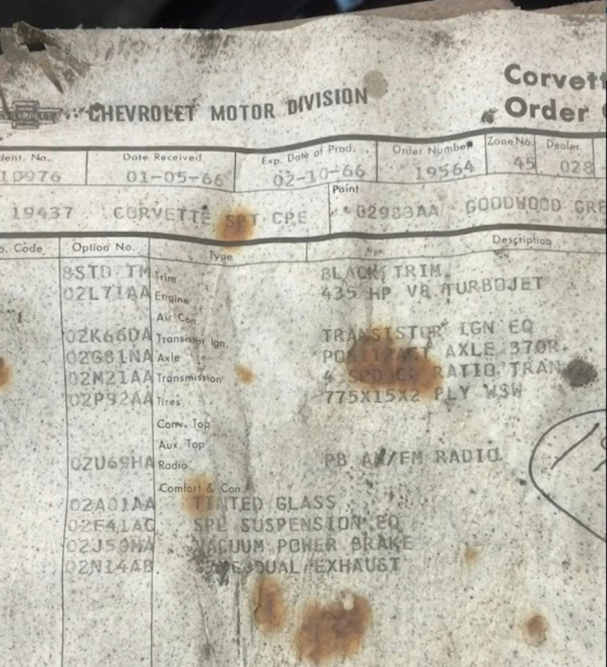 In this video from Collins Bros Jeep, we see a tank sticker from a 1967 Coupe revealed to human sight for the first time since January of 1966 when the car was built. Though shot in vertical video, the media equivalent of waterboarding, it’s still interesting to watch the dust get brushed away and check out all the options listed.