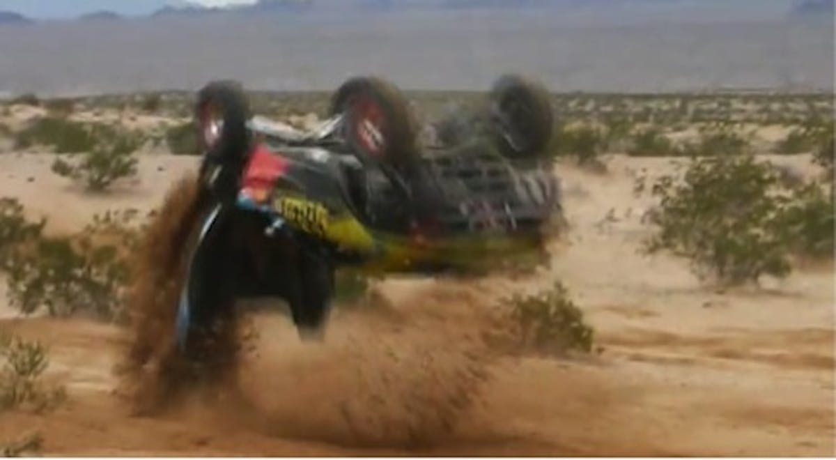 Buddy Crisp’s LS3-powered Rally Fighter has been around for a while, but his latest jaunt has thrust it straight to the center of public attention. While fighting for position in the “Best in the Desert Race,” Crisp managed to take his ride for a graceful tumble.