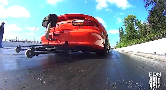 Recently, we found this burnout video of the SAM Camaro at a drag racing event (naturally), and although there’s a lot of tire smoke and music in the background it’s not what you might expect. Typically you would hear the howling from a massive engine, heavy metal music, and cheering from the fans in the bleachers.