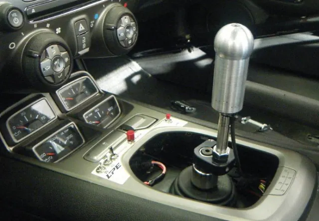 According to Brent Malone from LPE, “…the shifter has a built in strain gauge that outputs a voltage when forced is applied to the handle. This in turn sends the signal to our torque cut module and lets us shift our RPM faceplated TR6060 trans.”