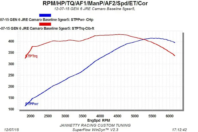 If the 431 number is consistent, that’d put the 2016 Camaro SS closer to 490 horsepower than 455, as per its rating. Even the 414 horsepower run would suggest a power level closer to 475 than 455, and same with the 430-ish lb-ft of torque. A perecent drivetrain loss puts the torque rating within spitting distance of 500, a big jump from the 460 lb-ft the LT1 is actually rated at.