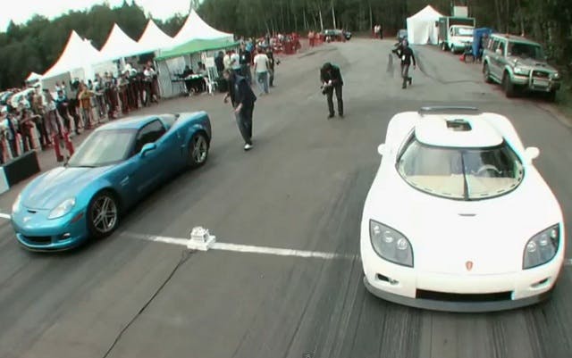 Never underestimate American muscle though, even when it happens to be in Russia (where this race took place.) The Corvette is said to be a supercharged Z06 model, with around 700 horsepower on tap. But that can’t possibly be right, as the Corvette beats the million-dollar Koenigsegg in ever category, nailing a 12.3 second quarter mile and blitzing down the 1-mile track in just over 28 seconds, just barely beating the CCXR. Amazing. Maybe he had a hidden nitrous kit along for the ride? Or perhaps the Chevy Corvette really is just that damn good…