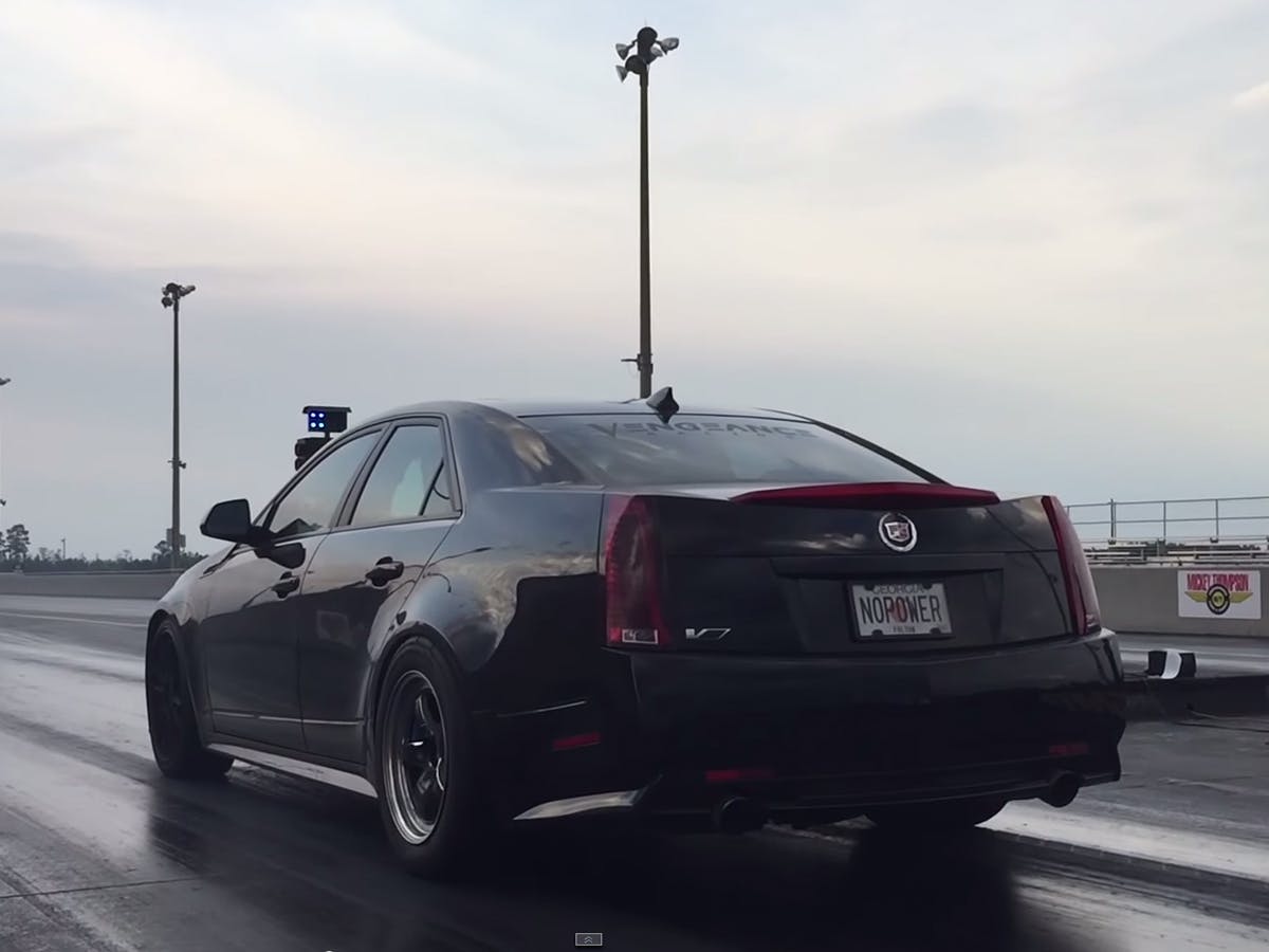 The owner of this particular CTS-V Sedan is Rob Sutton, and after he purchased the car, he set out to build the quickest 6-speed manual CTS-V in the world. Back in the beginning of April, Sutton claimed that record in the quarter-mile, and also another record for the world’s fastest stock bottom end CTS-V at the same time. We were surprised when we saw the quarter-mile video, though. CTS-Vs are true sleepers and Sutton’s just enforces that statement. The launch was soft, but the car just takes off down the track, turning into a little spec at the end of the dragstrip in the blink of an eye.