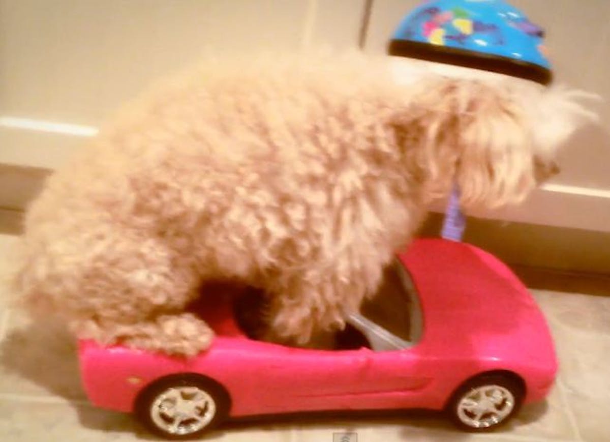 There is something very appropriate about this video, starting with the dog’s name, Timbit. Timbit is a nine-year old Toy Poodle (just a miniature version of a regular poodle) who apparently has a need for speed. The car, naturally, is a Corvette, albeit one that has undergone the pink Barbie treatment. For a Toy Poodle, this makes only too much sense.