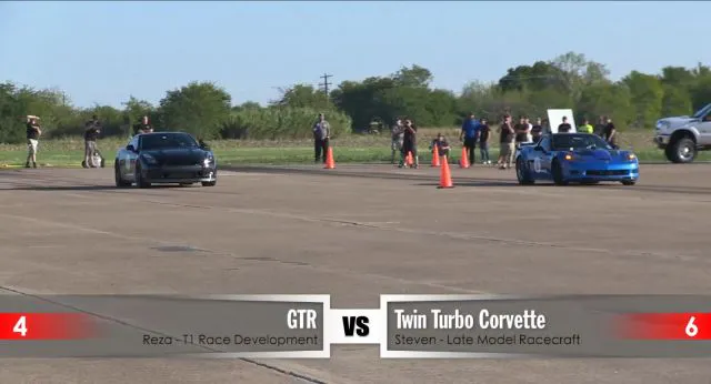 It comes as no surprise that in this year’s final round, the T1 Race Development Nissan GT-R is pitted against Steven Fereday in an LMR built Corvette C6. These “street cars” rolled at 60mph to the start, at which point both drivers punched it and went flat out for 1500 feet until they crossed the finish line. When the dust had settled, T1 Race Development’s Nissan just didn’t have the power to take down the Late Model Racecraft Vette. Before crossing the line the Corvette managed to reach a staggering 189 MPH, with the GTR hitting 176 MPH.