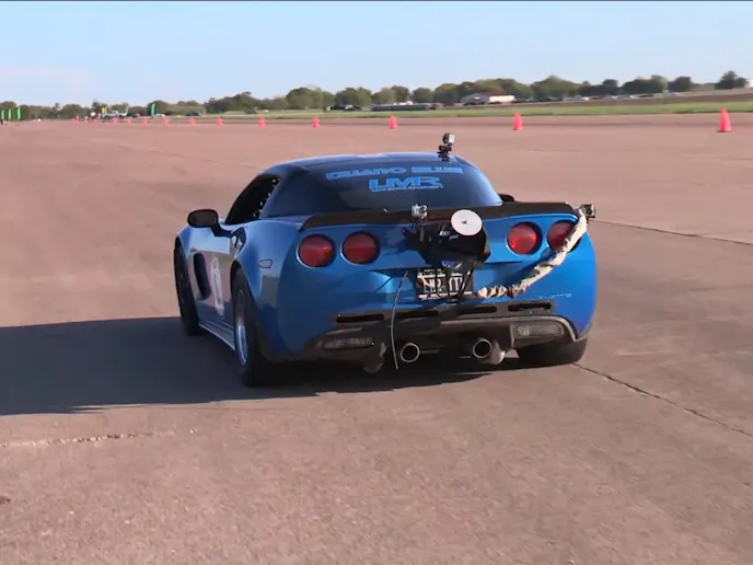What exactly does it take to reach such extravagant speeds in such a confined distance? Among a slew of other parts and safety equipment is some forced induction by means of twin turbos and a sizeable amount of giggle gas. From what we can gather, these mods set this particular Vette around the 1400 RWHP mark. Beating out more than 60 other cars of that caliber is no small feat. Hats off to the guys at LMR!