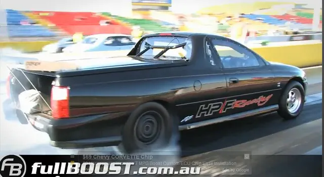 Check out this Australian Opel Senator/Caddy Catera/GTO/Holden El Camino “Ute,” powered by a 408 CI, Twin Turbo LS2 rippin’ down the strip in the 8’s! Aussies like their American muscle and it’s always cool to see “their” versions of GM and Ford cars. Let’s go down south and check out the Full Boost /YouTube clip from the Calder Legal Off-Street Drags.