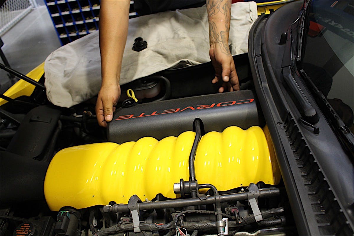 Which leads us to Mel Schilling and his Millennium Yellow, Corvette roadster. A 2002 model with an LS1 V8 and a six-speed transmission, he already spiced things up with custom seats, a Hurst short throw shifter and a K&N cold air intake.