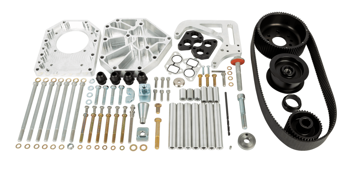 The new Billet Mounting Bracket Assembly from Vortech is engineered to install the massive V-30 centrifugal supercharger onto the LS engine. The V-30s are a super reliable and efficient supercharger that’s the perfect candidate for drag racers looking for immense power and boost levels on the LS platform. These units have been put to the test of the most unrelenting racing conditions possible and are ready to dominate the competition. The power rating for this new system is from 1,400 to a mind-bending 2,800 horsepower.