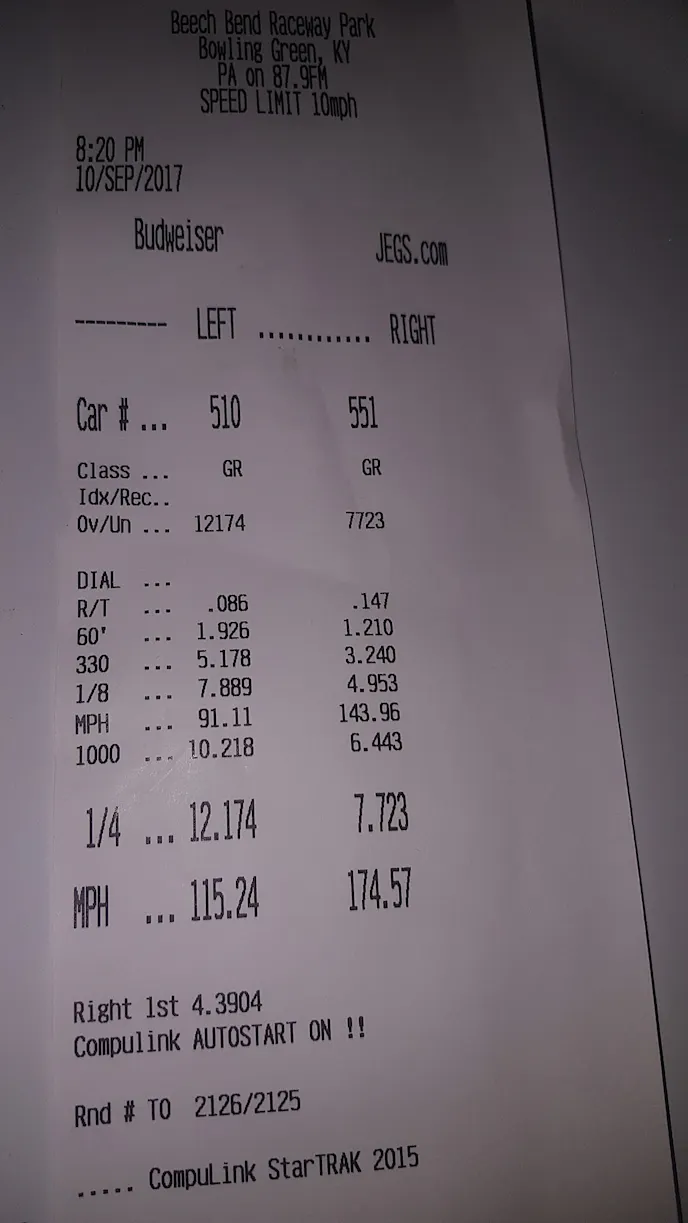 Jon added that the phenomenal track prep and cool air temperatures really helped out as well, allowing him to make back-to-back record-breaking runs. Not only did he smash the stock bottom end 5.3 record, he did so repeatedly and with zero problems or breakages—even though he was shifting at 8,500 rpm and crossed the line at 8,100 rpm, all on stock pistons, rods, and even rockers. The 2,900 pound car pulled onto the trailer under its own power and is headed to Streetcar Takeover in St. Louis this weekend to find out if it can go even faster.