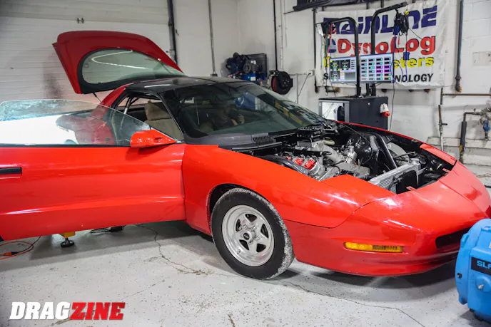 Project Number Cruncher’s first trip to the track didn’t produce the results we were looking for and you can see how that went right here. To address the issues we ran into, a set of header extensions were fabricated and the decision was made to use the remote tuning functions of the FuelTech 550 so De Leon could get our ride dialed in better. We took Project Number Cruncher to Kontras Performance, where Bryan Mundy of MundyTuned worked with De Leon to tune our Firebird on a hub dyno.