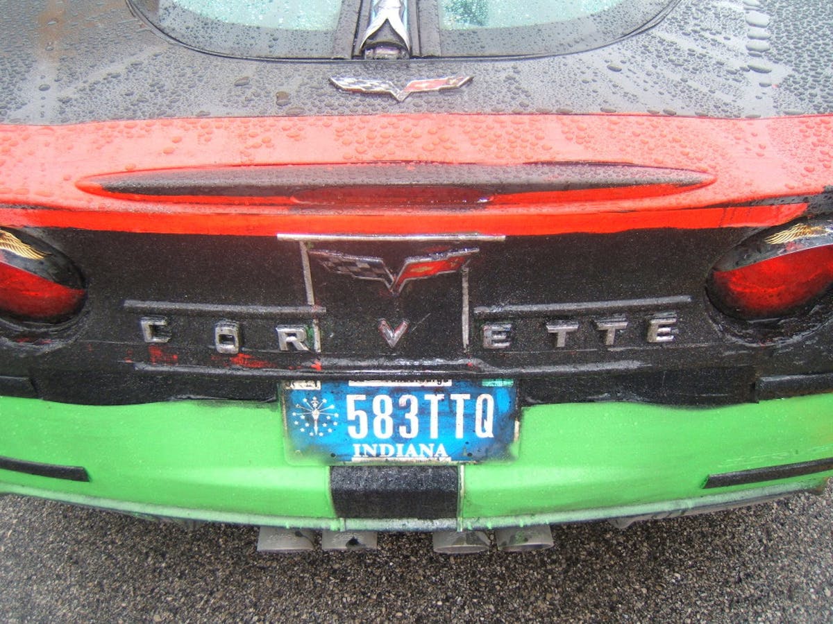 Usually, Volkswagens, Subarus, Mazdas or old American barges are the reluctant canvases for this kind of thing, but art car Corvettes are a whole ‘nother beast.
