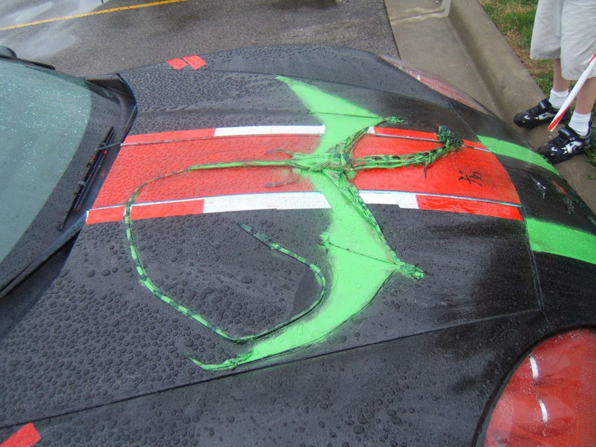 The thing that really makes us scratch our collective head is, globbing latex paint and edible classroom glue on a $50k car. We did an article on the famous “Dragon” C6 and it looks like the day glow poster paint would wash off but, good Lord.