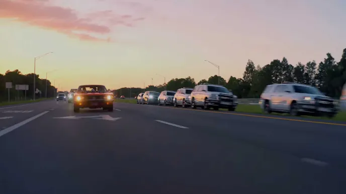 The video’s tagline is, “can run from any cop.” It looks like the white vehicles are lining up for the challenge!