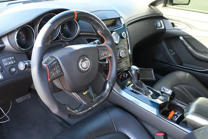 Upholstery, color, material: All stock besides the carbon-fiber steering wheel from Street Driven Performance