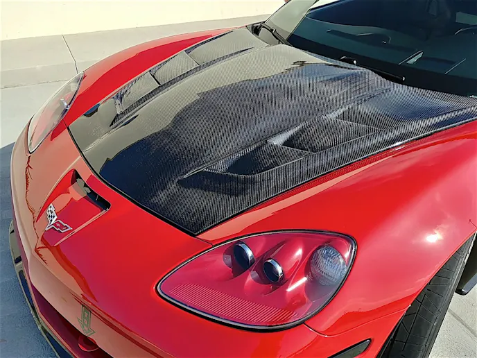 Though far from garish, it’s clear from a glance that this Corvette is anything but factory stock. Carbon fiber plays a significant role in both its aesthetic and weight reduction efforts.