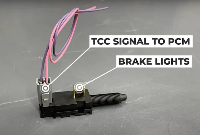 Then, you will take the supplied pigtail and connect the pink wire to a switched ignition source. Ensure that you do not hook this wire up to a constant 12-volt source, as it can cause quirky issues. The purple wire will then be attached to the TCC wire in the harness. With everything installed correctly, when the brake is pressed, the switch will send power to the ECU, letting it know the brake has been applied, thus unlocking the torque converter clutch.