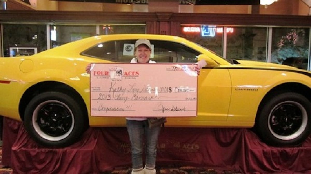 The casino actually gave her a choice between what looks like a base-model Camaro V6, and $16,000 cash. Even after figuring in for taxes and whatnot, the used value of that Camaro was probably way more than the $16,000. But with two new cars already, Kathy and her family decided to take the money and run. We can’t really say we blame her, but would you have done the same?