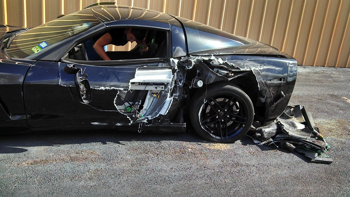 Marshal had just completed a long list of mods to the Vette, including a 427-inch LS3 with tweaked LSA heads and a FAST 102mm intake, plus a high-stall converter and built transmission. Oh, and of course that roll cage, which kept the truck from further intruding into the passenger compartment and let the factory safety equipment do its job.