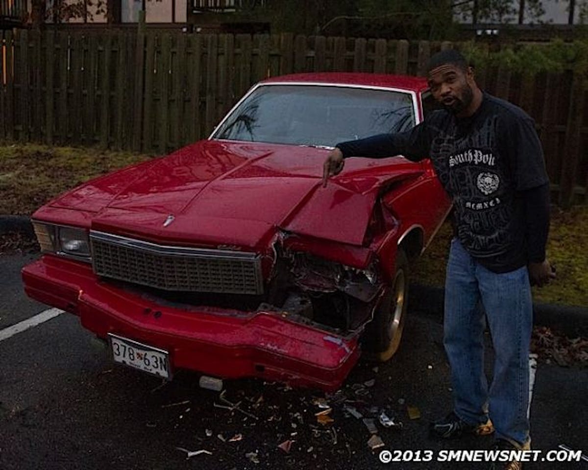 Obviously, things didn’t go as planned, as she struck a Dodge Caravan, a GMC Yukon, and a ’78-79 Chevy Monte Carlo. The minivan and SUV suffered mostly a few scrapes and bruises, while the Monte may very well be totaled.