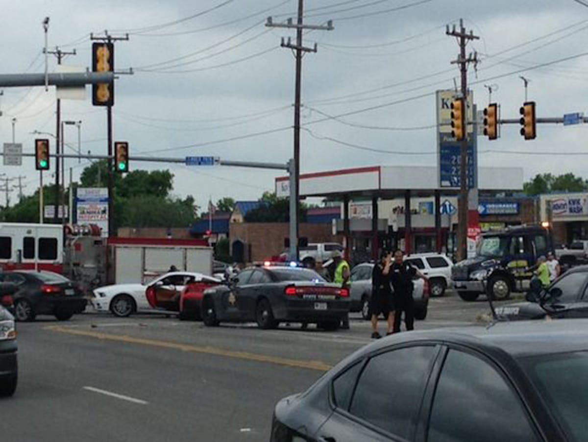 Residents of San Antonio, Texas perked up in their car seats to the sounds of screeching tires and snapping body panels earlier this week. That’s because a rather intense collision occurred in the city on Sunday, involving a red C7 and a white Mustang.