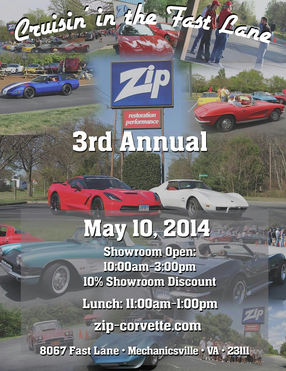 In the vicinity of Richmond, Virginia? Looking for something fun and Corvette-related to do on Saturday, May 10th? Then may we suggest you set aside a little time to go visit our friends at Zip Corvette and be a part of their third annual “Cruisin’ in the Fast Lane” customer appreciation day.