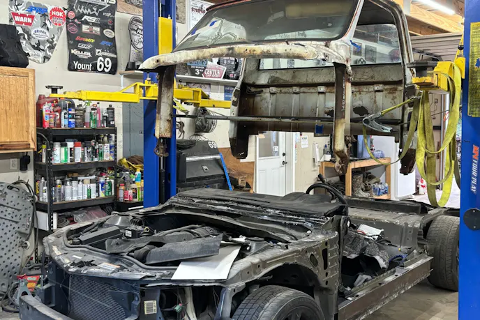 Meanwhile, back home sat a lightly wrecked 2010 Camaro SS. It had taken a hit in the driver’s door and rear suspension, but was otherwise mechanically sound. The original plan was to pull the drivetrain and drop it into a 1994 OBS truck. But while hauling the newly acquired C10 back from Texas, the lightbulb went off—why not try to combine the two?