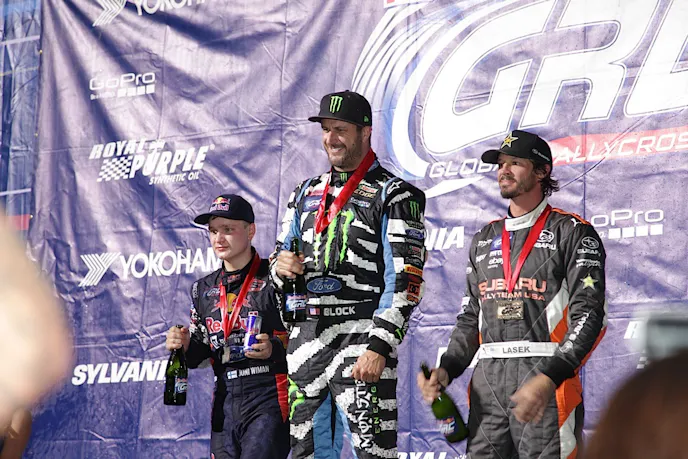 The final round of the Global Rally Cross in Las Vegas was one of the most exciting events Sin City has seen in a while, and a suspenseful show put on by the drivers. Fireworks lit up the sky as drivers and spectators alike acknowledged the season win of No. 31 Red Bull/Bluebeam Ford Fiesta ST driver, Joni Wiman. The 2014 Red Bull Global Rally Cross ended with a champagne showered podium in celebration of Wiman’s season championship. Wiman, the youngest rally cross driver in the sport, turned 21 in Vegas that same day. Perhaps, now he can partake in all of that championship champagne now.