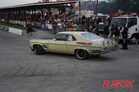 The drag strip was back in action as the sun set and spectators packed the stands. Once the sun was down, we were treated to the burnout contest that saw YouTube content creators, professional drivers, and car builders battle it out with huge plumes of smoke for the crowd’s enjoyment. YouTube and Instagram content creator Lacy Blair showed up with a Dodge pickup packed with twin turbo LS power to throw down all the smoke in her first burnout contest. Although she did outstanding and held the lead for a time, the highlight was undeniably Demolition Ranch Matt and his ProCharged LS-swapped ’64 Impala low rider. He had the car bouncing, hopping, and popping tires while filling the air with smoke. It was something you’re likely only to see at an LS Fest event.