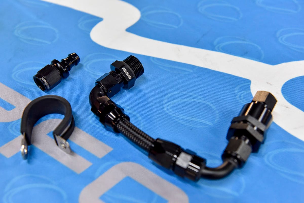 The last thing we installed before hitting the track for our baseline testing was a premium high-performance metal mesh reusable transmission filter and filler kit from Dodson Motorsports. If you’ve ever tried to change the transmission fluid in a C8 or simply overfill it slightly for track use, then you are aware that the only possible way of doing either task requires the removal of the factory airbox. To remedy this issue, Dodson Motorsports created an assembly of hoses and fittings along with a one-way valve that, once installed on the transmission, allows you to perform fluid changes and fills without touching the factory airbox.