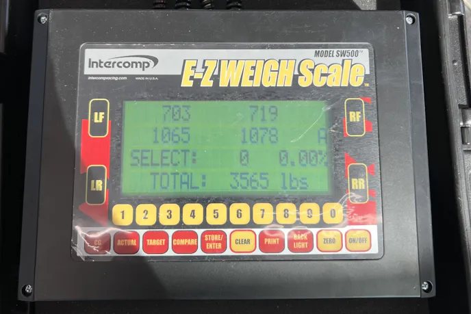 Before we took Track Addict back to Willow Springs to find out if we improved our lap times, it needed to be set on the scales to double-check the corner weights and make sure the car was balanced. Using Intercomp‘s E-Z Weigh Scales we were able to improve the car’s balance with only minor adjustments.