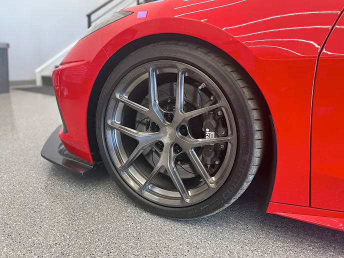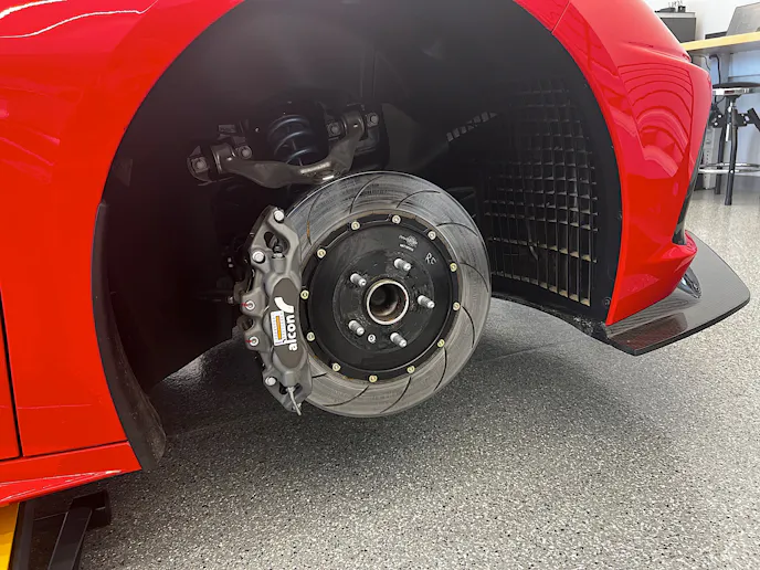 To recap everything we’ve done to the C8 so far, phase one of Project Track Addict began with preparing the C8 for all the upcoming track test sessions. We installed a C8-specific harness bar from Peitz Performance with mounting points for the Sparco harnesses to keep the driver and passenger securely in place. Additionally, we installed stronger axle bolts from Cicio Performance and upgraded the transmission filter and filler tube with components from Dodson Motorsports. The highlight of phase one came when we pulled the factory wheels and tires off in favor of lightweight Forgeline SS1-R wheels wrapped in Continental ExtremeContact Force tires. Jumping into phase two, we installed and tested the Alcon Pro Series brake package sourced from Lingenfelter Performance Engineering along with HAWK track-focused brake pads for the front and rear. See the full story on this upgrade here.
