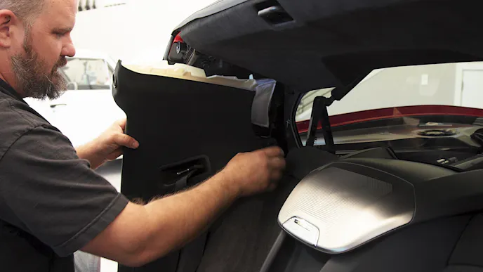 For the harness bar, we reached out to Peitz Performance and ordered their C8-specific unit. This harness bar is made from quality 1.25-inch diameter .120-inch wall DOM steel tubing and is formed in-house at the Peitz Performance facility in the USA. The harness bar passes NASA and SCCA tech inspections for the required harness angle and position with either factory or aftermarket seats. Another feature of the Peitz Performance harness bar is they designed it so you still have complete access to the fuse box located under your speaker. The installation of the harness bar does require some modification of the factory interior plastic panels. Still, Peitz Performance has gone the extra step and offers modified panels with its harness bar so you don’t have to modify your C8’s panels.