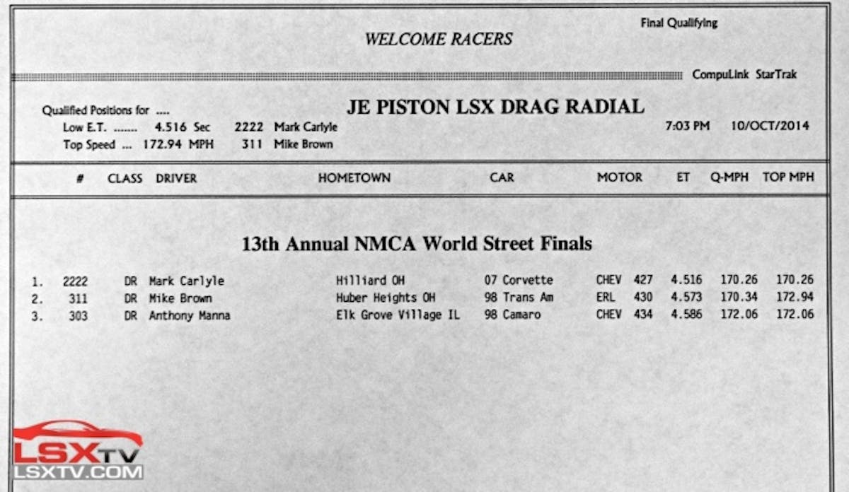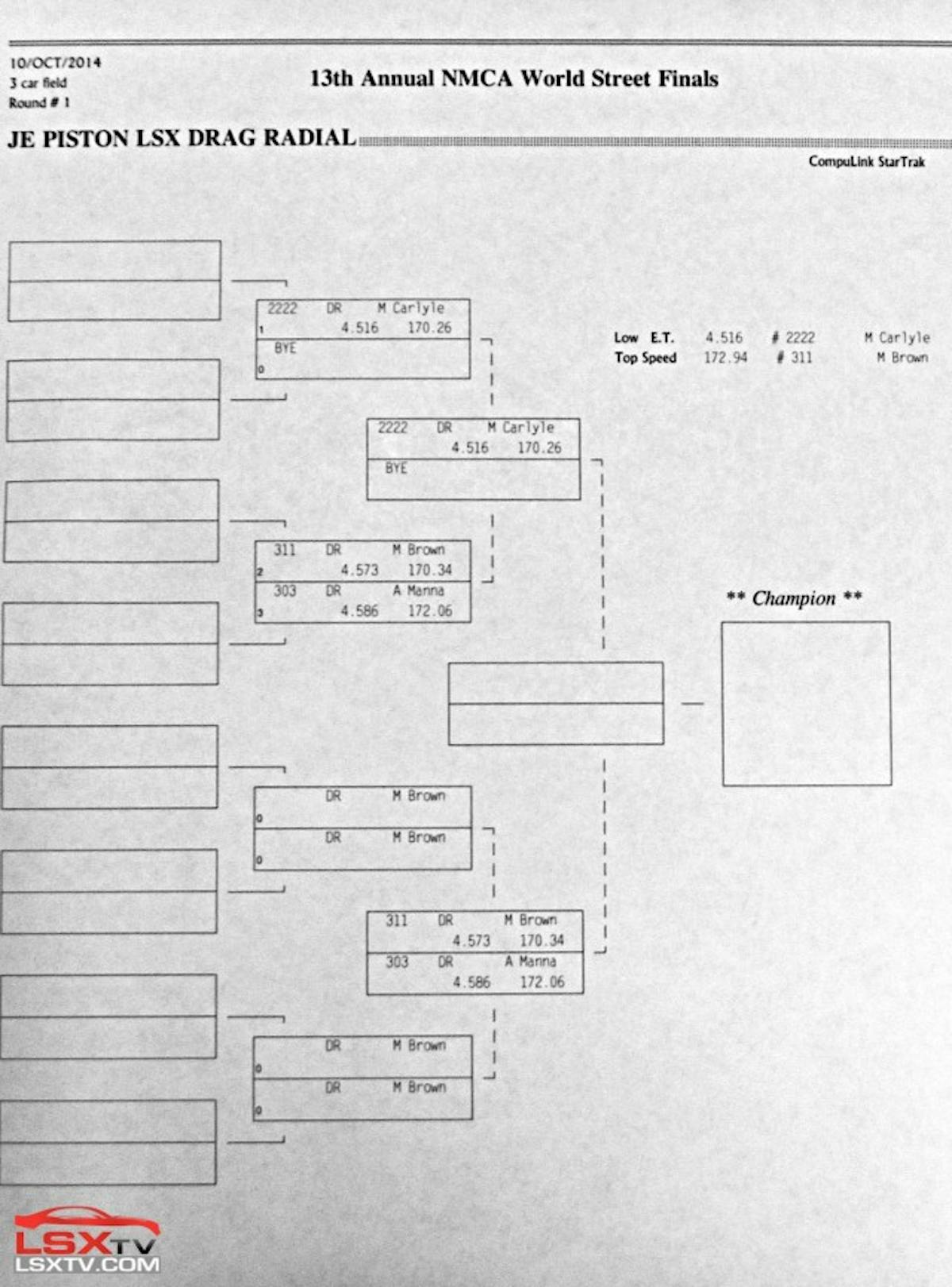 That’s it for tonight from Indy – after running the first round of NMCA Pro Mod, the decision was made to pull the plug thanks to track temperatures dropping to the point where traction became iffy. We will see you tomorrow bright and early with more LSX Challenge results, photos, news, and commentary!