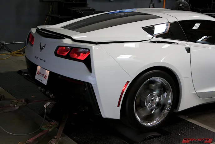 To start the process, we took our 2014 Stingray and strapped it on the DynoJet dyno (dynamometer) to see just how much power GM’s latest Corvette can put to the ground. Keep in mind, this is utilizing the six-speed automatic transmission, and the car is in 100-percent factory condition.