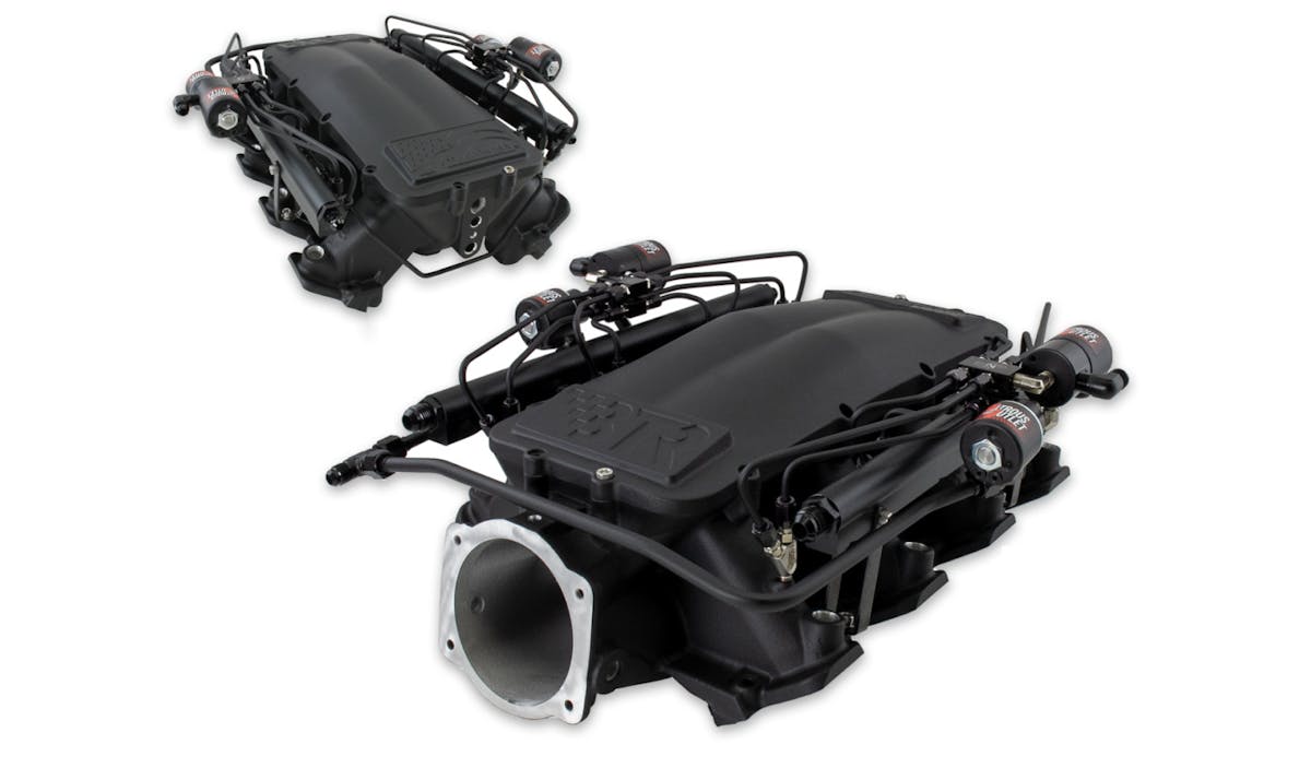 Dave Vasser: It comes down to how much nitrous is being added. If you’re injecting a lot of nitrous, a direct-port system may be your best option. A direct-port system will inject the nitrous directly into each cylinder, ensuring each cylinder is getting the same amount of nitrous. If you add a small amount of nitrous, there are many options, including a single nozzle in the air tube, an Interspooler plate system installed in the air tubing, or a throttle body plate on the intake manifold.