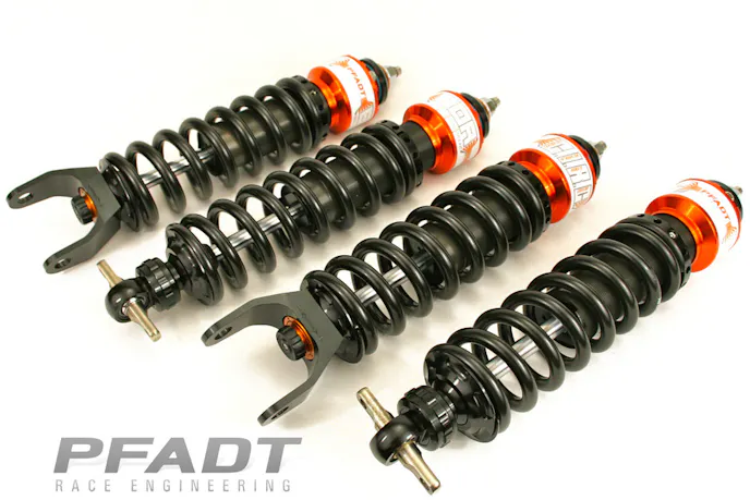 Now, hopefully you get the idea that the stock leafs aren’t terrible, and that they actually work very well, so we’re ready to talk about coilovers. Coilovers can have a lot to offer on both street driven and track toy late model Corvettes. “Most of our customers at Pfadt are not building 100% full-race cars, and they want to be able to drive their cars on the street a lot,” Sonnen explains. “Another advantage to coilovers is that there is a tremendous amount to be gained in terms of ride quality because with a truly independent suspension where you can control the spring rates on each corner, you are able to eliminate many of the negative effects of the leaf springs. So with coilovers you can tune your suspension for great streetability and trackability.”