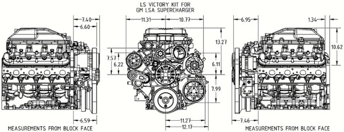 They’re all relatively hassle-free choices for any custom build, except when trying to piece together or fabricate the front accessory drive. Many of the problems stem from correctly matching the pulley sizes to drive the supercharger.