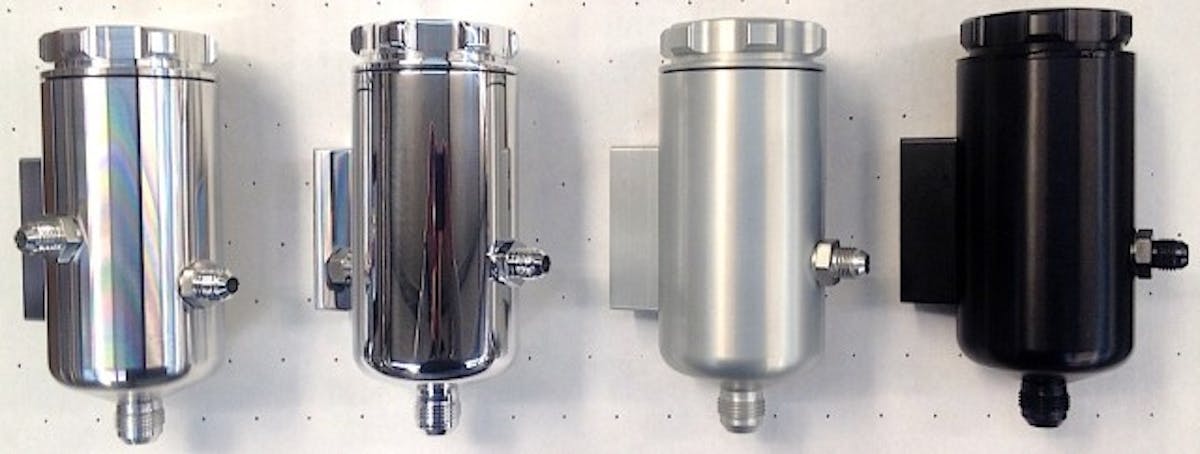 Concept One offers its accessory drive systems in four finishes; from left in the above photo: machined, polished, clear anodized and black anodized.
