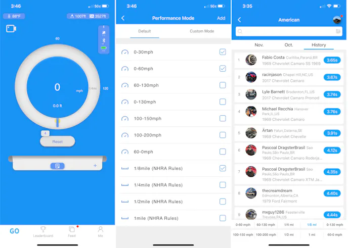 The Dragy is easy to use and set up. The unit employs high-speed GPS satellites and then measures your vehicle’s performance within 1/100th of a second. The software will record the pass before storing it on your device. You can also select the parameters you want to test, including 0-30 mph, 0-60 mph, 60-130 mph,1/8-mile, 1/4-mile, and 1/2-mile, to name a few. And if that’s not enough, you can also use the custom mode and add more settings, which we did, like 60-foot time, 330-foot times, or any others you might need.
