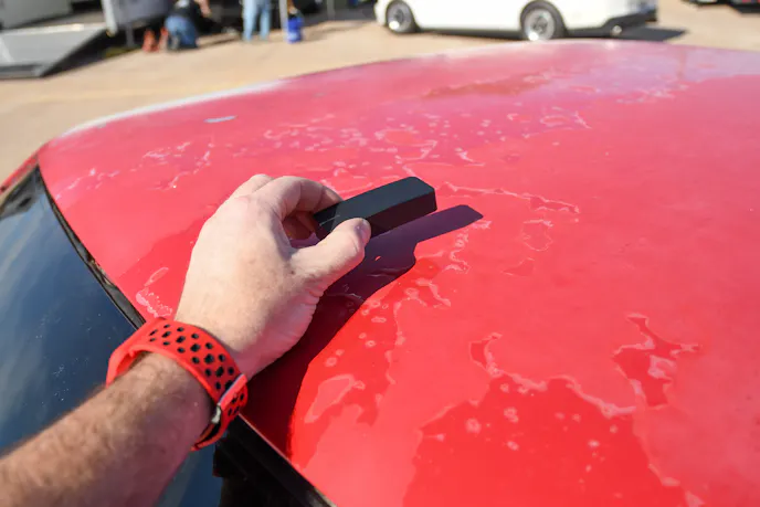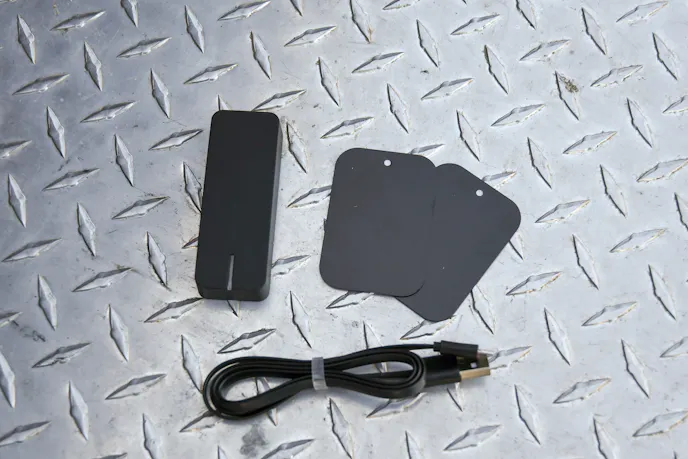 The Dragy is a pretty simple device on the outside. It’s nothing more than a little black box that’s 1-inch wide, 3-inches long, and 1/2-inch tall. The device has a magnet on the bottom and comes with two metal plates with an adhesive that can be mounted on the car’s interior. It also includes a charging cord; however, you will need to provide a power supply. The only other thing required to make this device work is the Dragy App, which can be downloaded from the Apple App Store for an iOS device or the Google Play Store for an Android. After we loaded the app on the iPhone, charged the Dragy, and updated the software, we were ready to do some testing.