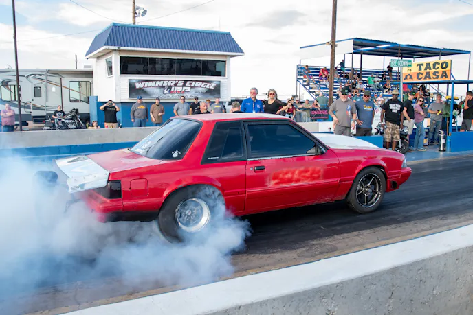 One of the more popular devices constantly filling our social media feed is the Dragy GPS Performance Meter. And while we know that a lot of you have experience with this product, we have yet to test the unit ourselves, and decided to do just that. For our test, we reached out to a good friend of ours, Luke Thompson, owner of Mike’s Lube Shop and an avid drag racer. For the test, Thompson met us out at Wichita Raceway Park in Wichita Falls, Texas, where the Brawl in the Falls no-prep race was taking place. His notchback Mustang houses a turbocharged engine, Holley Dominator ECU, and a host of other go-fast goodies.
