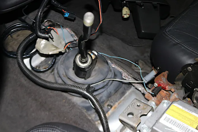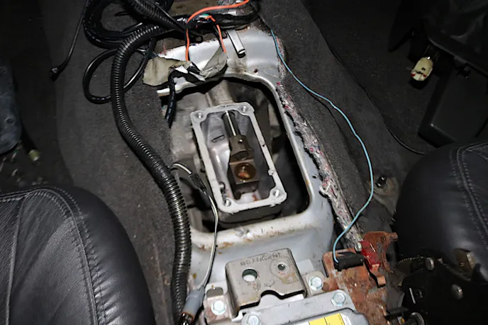 For our installation, we started by removing the center console along with the shifter. While all of this may not be necessary, it will make your life a lot easier when you go to unbolt the transmission from the bellhousing. The process is straight-forward and requires you to remove the shift knob by simply unscrewing it and then removing six bolts that free the center console from the body. Once these are out, and the hand brake is up, the console simply comes up and out of the way.