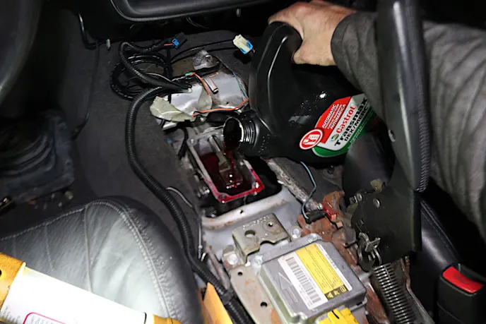 While not entirely necessary, we removed the center console from the vehicle to make reaching the top transmission bolts easier to access later on in the removal.