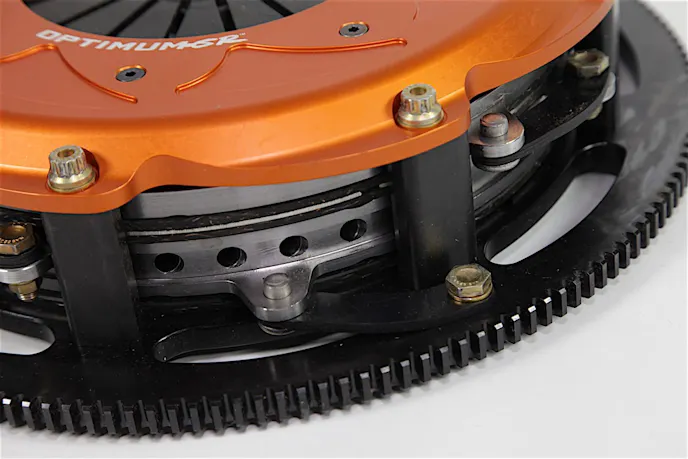 The inertia properties of the flywheel can accentuate clutch attributes. For example, a very light flywheel can make a clutch feel more aggressive. The ability of the flywheel to control heat and maintain tolerance can also prolong clutch performance and wear under extreme conditions. The friction surface material and inertia most directly affect how the clutch feels to the end user, and will ultimately dictate other factors, such as performance and wear life.”