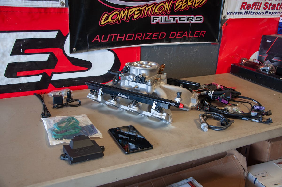 The Pro-Flo 4 EFI system included almost everything we needed to do the swap our engine and get it on the dyno. The system came with a cast aluminum intake manifold, throttle body, fuel injectors, fuel rails, sensors, fittings, hardware, ECU, wiring harness, tablet, and detailed instructions. You will need to order the Ignition/IAC Harness harness, but we we’ll into that later.