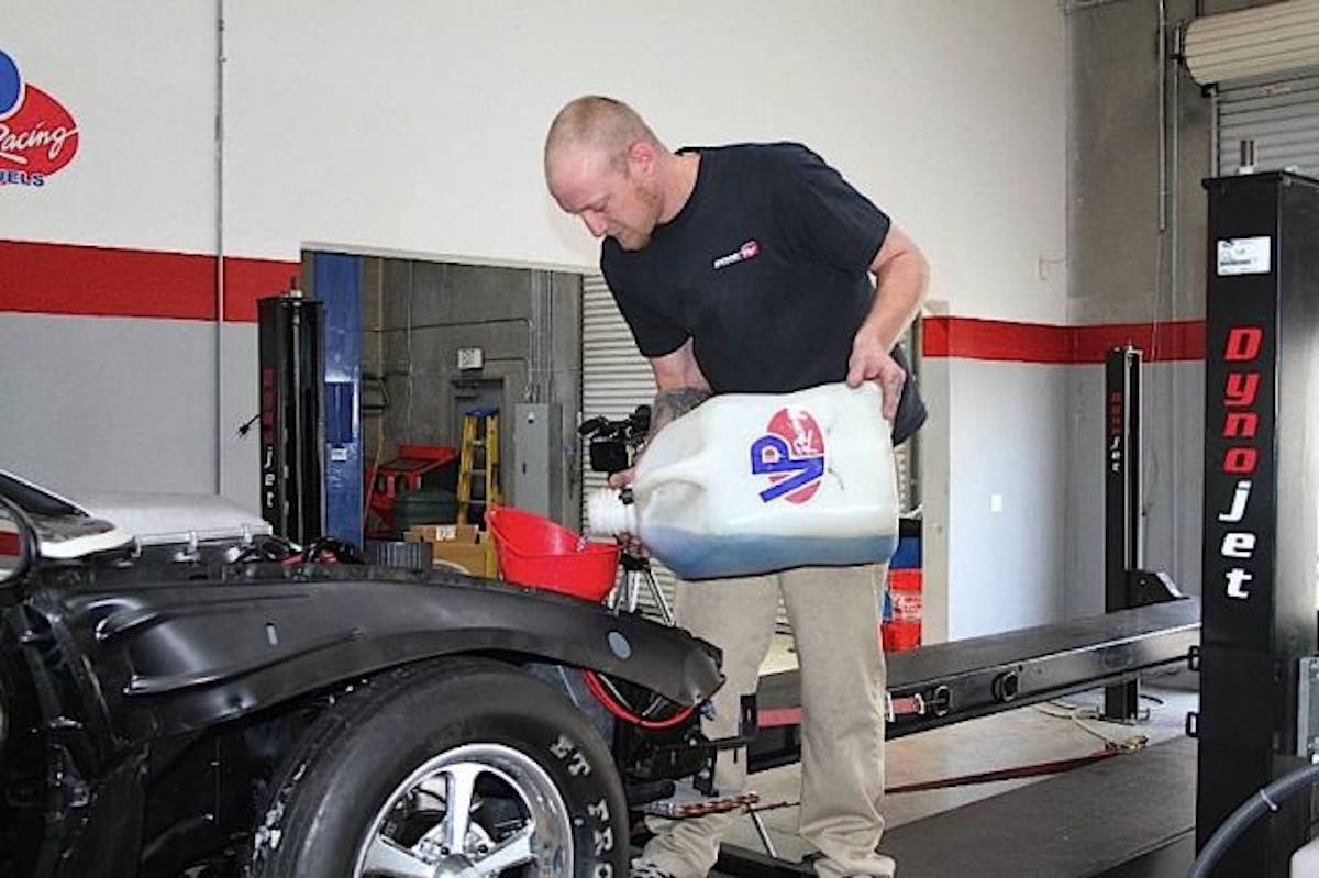 Sean fills up our Camaro with {link=https://lsxmag.com/tech-stories/fuel-cooling-ignition-tech/how-to-pick-the-right-racing-fuel-with-vp-racing-fuels-2/}VP Racing C16{/link}, a race fuel required for our high-compression and boosted application. Since BlownZ is pushing 20 psi of boost through 11:1 compression ratio pistons, C16 is a must.