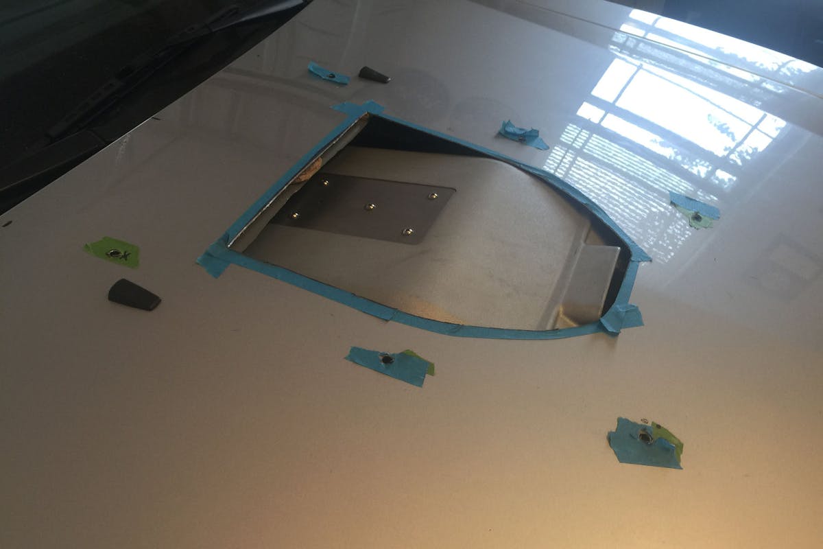 Russo explained that when looking at clearance, he knew he would need to cut the hood to make everything fit. But after realizing the true extent required to make the ZL1 supercharger lid work, he opted to swap it out for a second generation CTS-V supercharger lid instead. “Once I got the new lid installed and took some initial measurements, I pulled the hood and got to cutting,” he recalls. “Yeah, I could’ve sourced a new hood, but budget was king.”